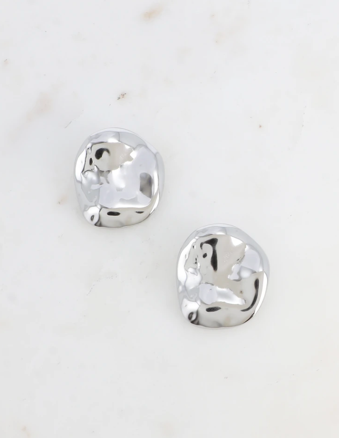 Boucles d'oreilles à puce en acier inoxydable composées d'une pièce légèrement martelée.