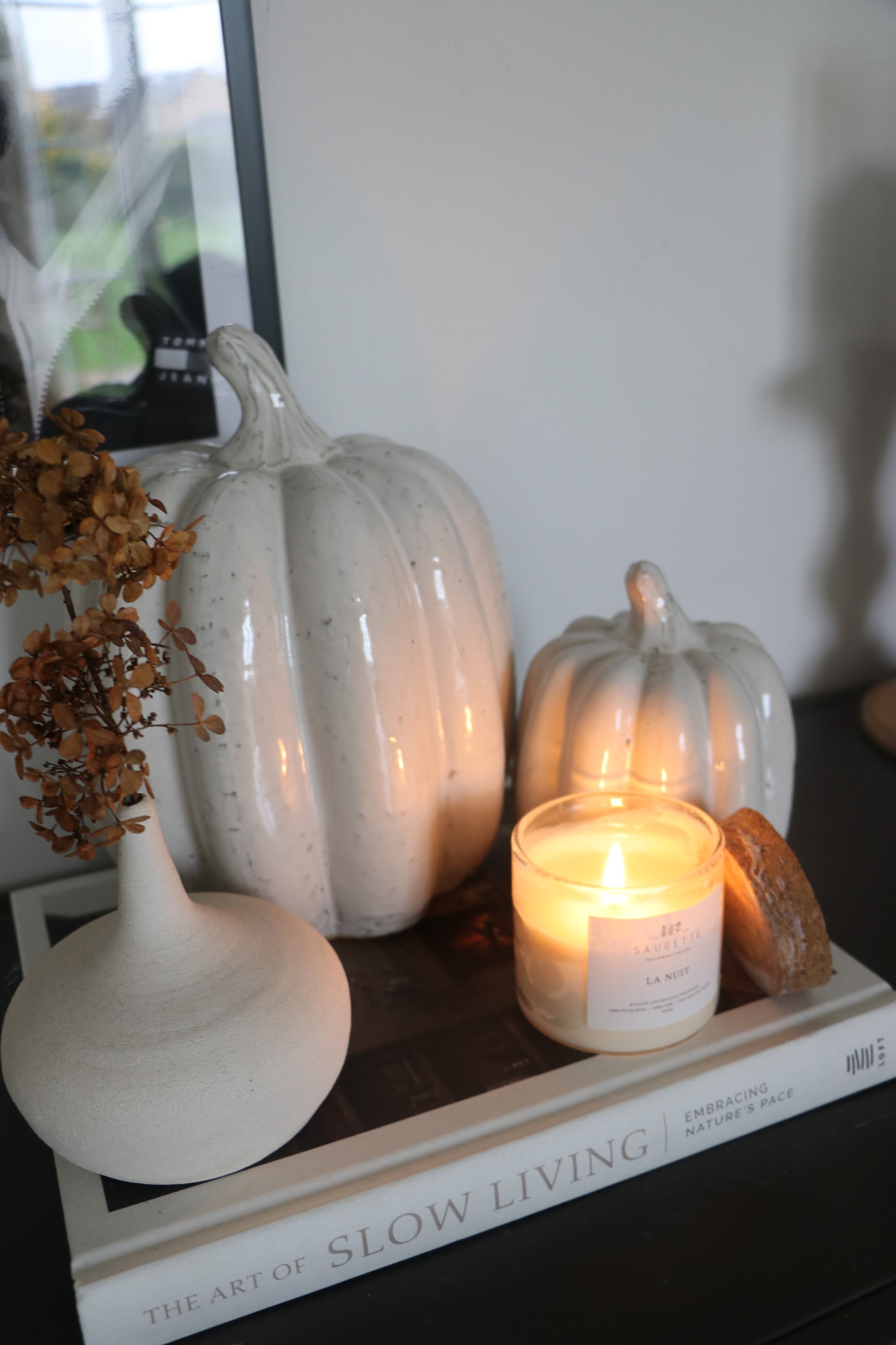 Grande (L) Citrouille en céramique blanche, 25 cm